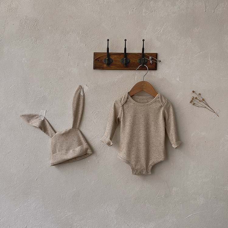 Baby Boy/Girl Solid Color Button Up Long Sleeve Romper/Bodysuit with Hat