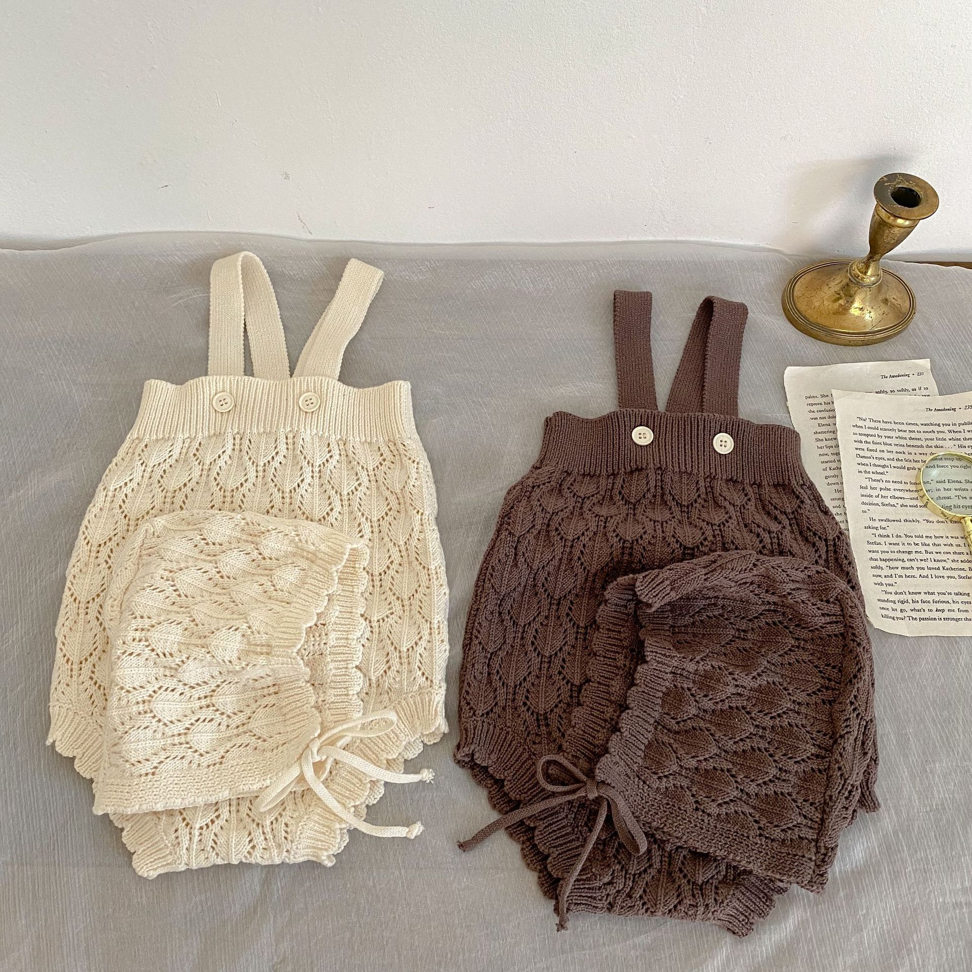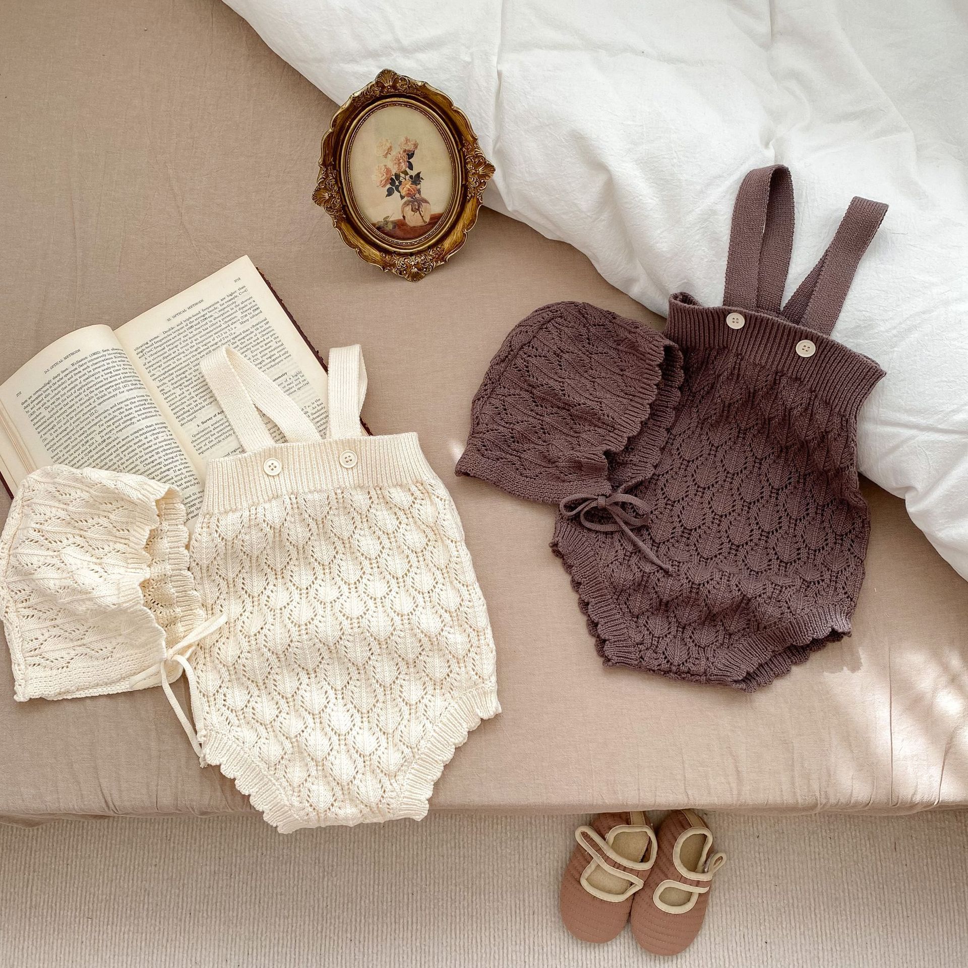 Baby Toddler Girl Hollow Knit Bodysuit with Hat