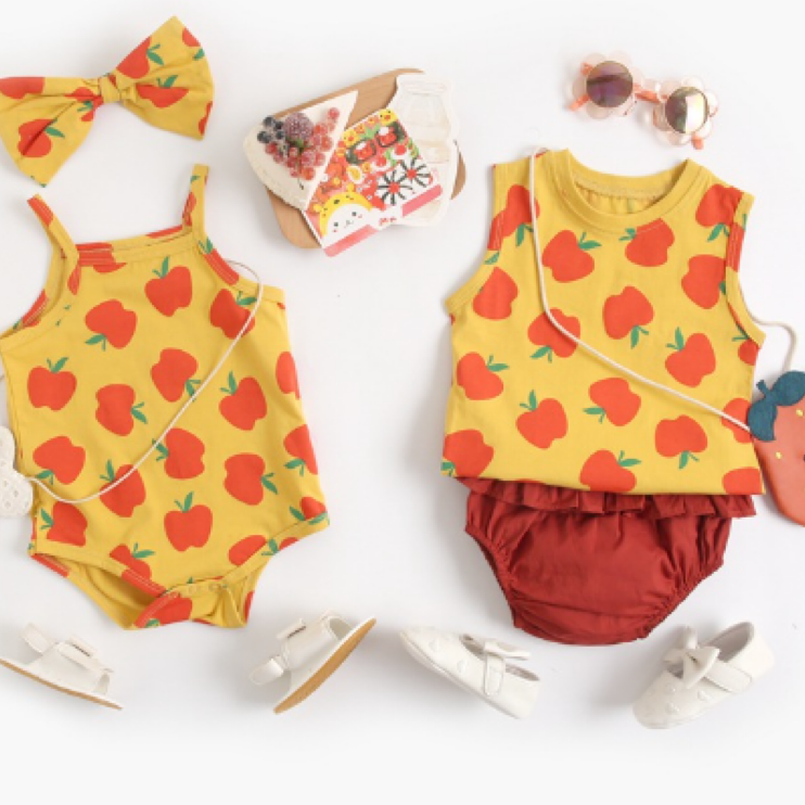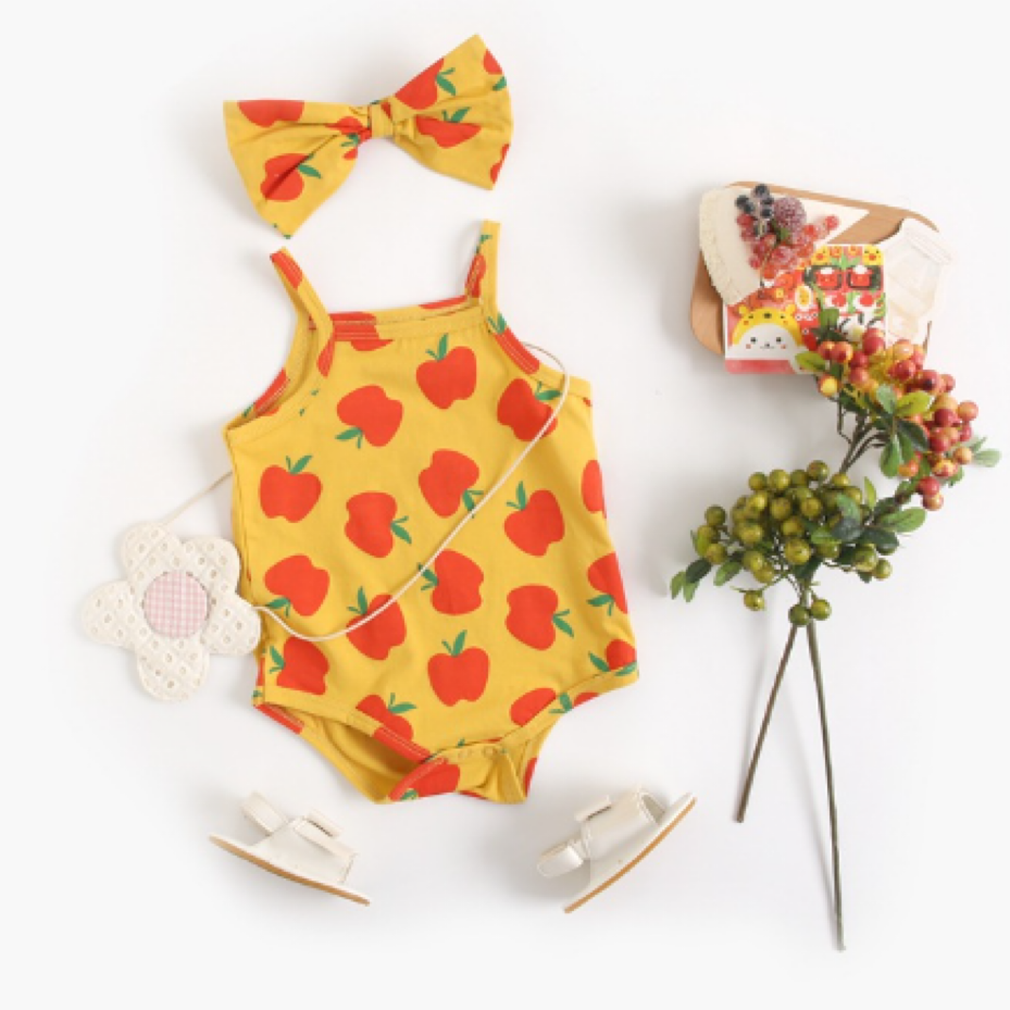 Baby Girl Colorful Allover Apple Sling Sleeveless Pullover Snap Bodysuit & Apple Pullover Sleeveless Tank Top and Shorts Set