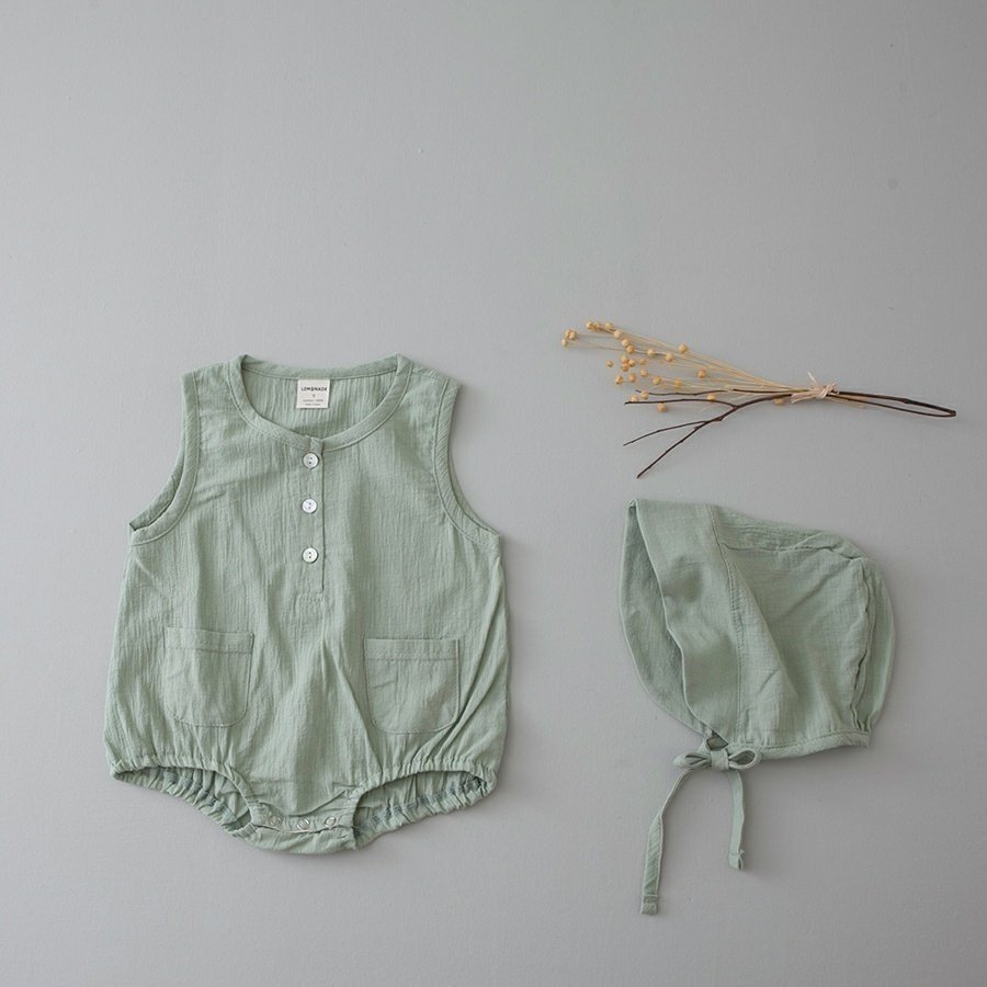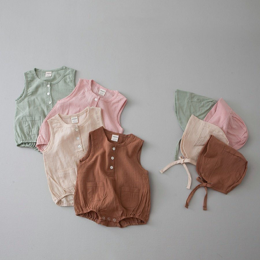 2pcs Baby Boy/Girl Summer Solid Color Sleeveless Bodysuit with Hat