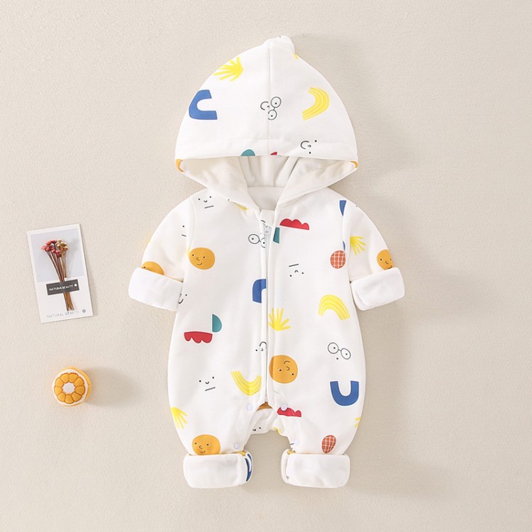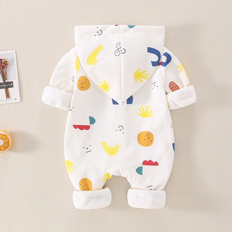 Baby Boy/Girl Winter Thicken Cartoon Print Fluff Long Sleeve Hooded Romper