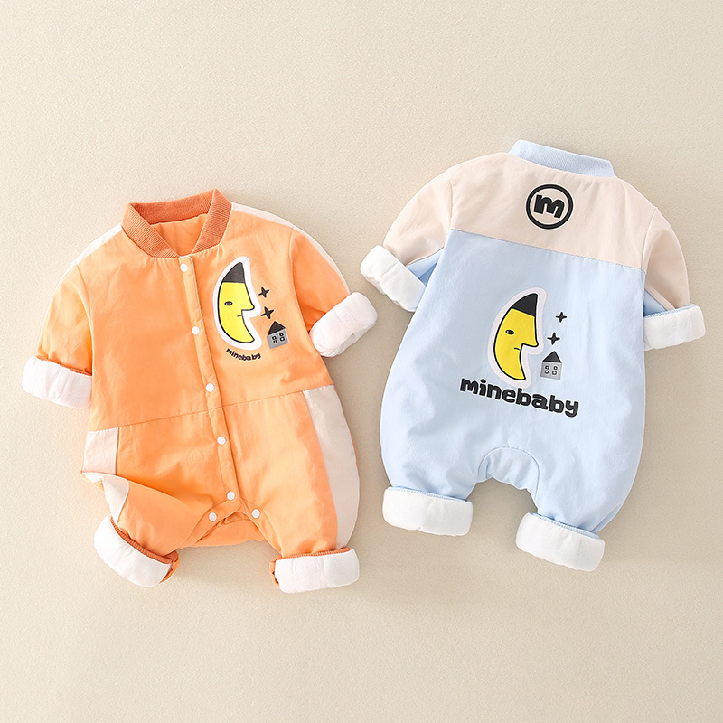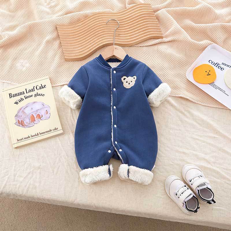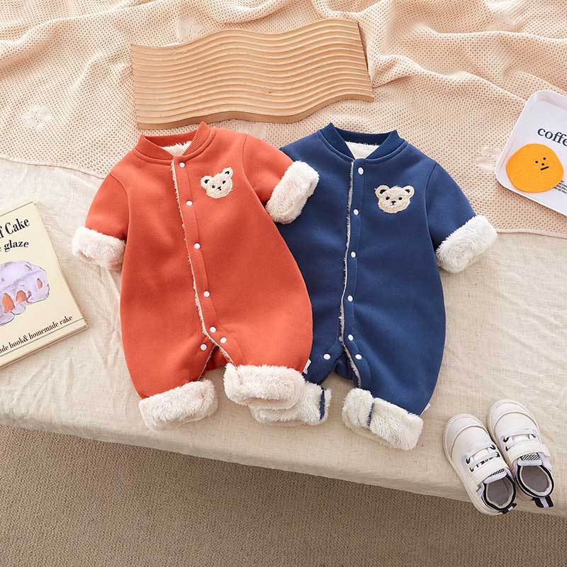 Baby Boy/Girl Winter Thicken Porket Embroidery Long Sleeve Hooded Fluff Romper