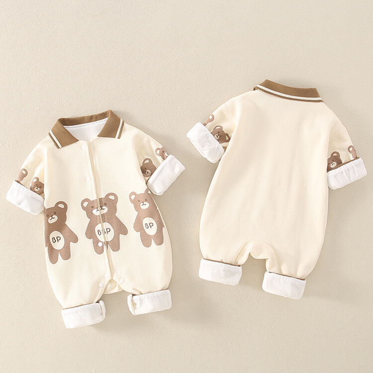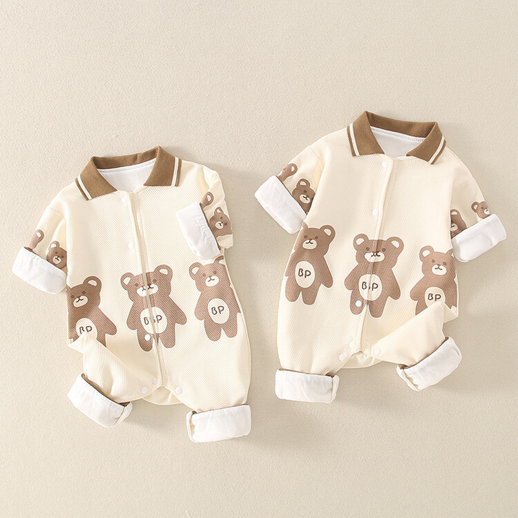 Baby Boy/Girl Bear Pattern Long Sleeve Pullover Romper
