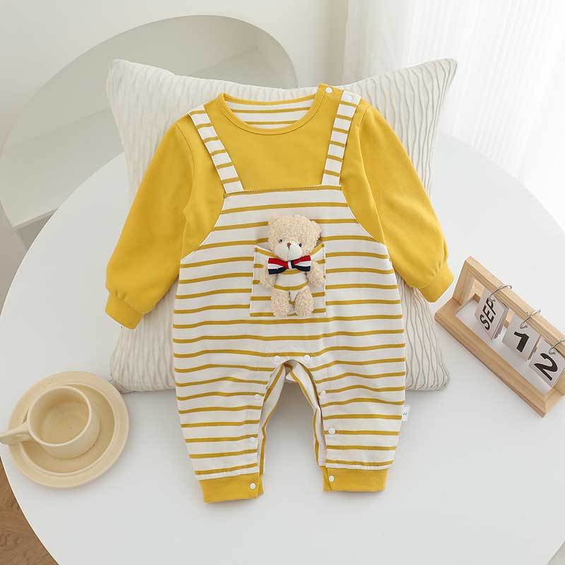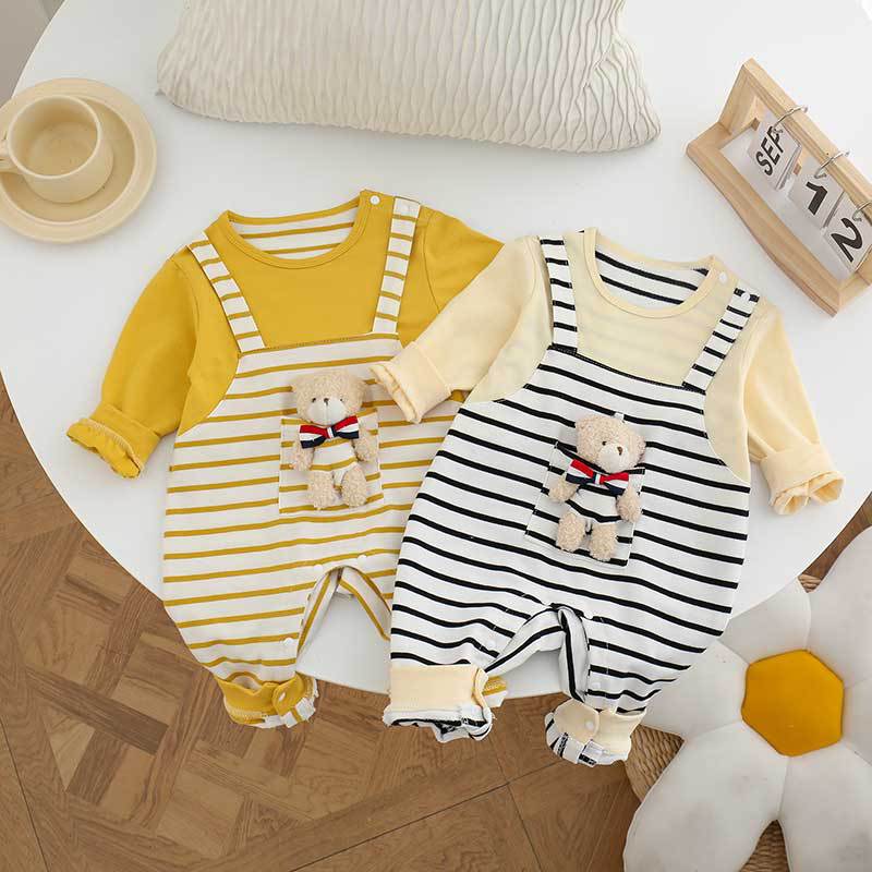 Baby Boy/Girl 3D Bear Stripe Pullover Long Sleeve Romper