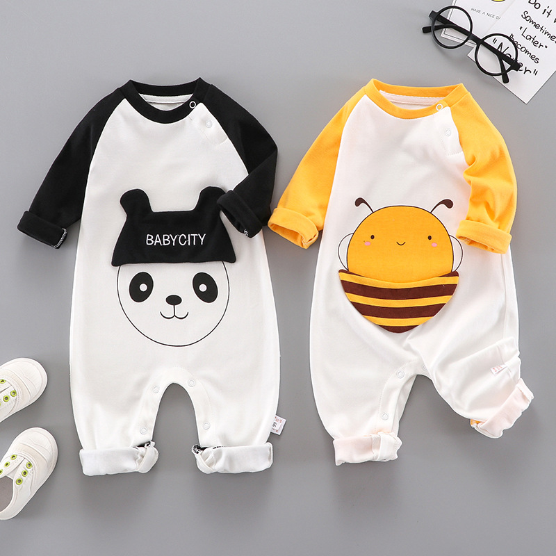 Baby Boy/Girl Bear Print Block Color Long Sleeve Romper