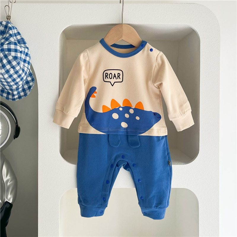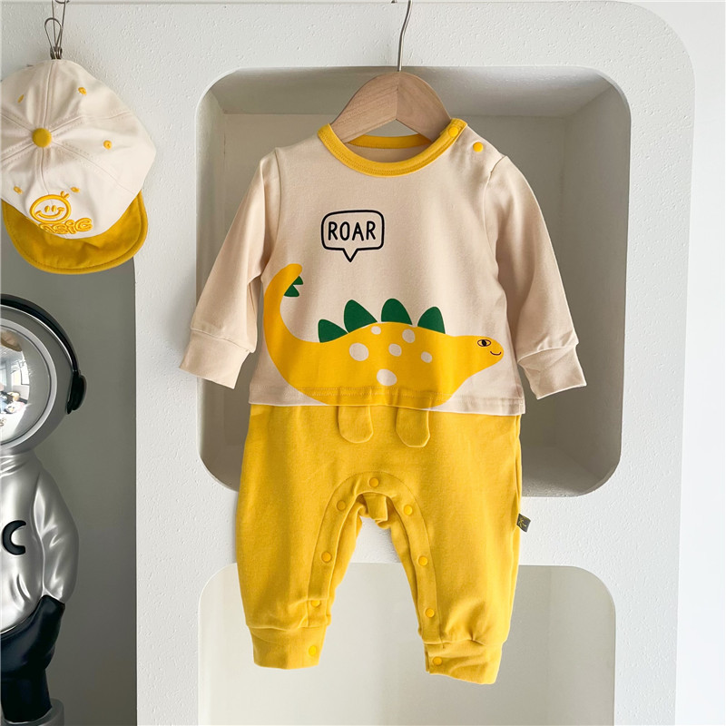 Baby Boy 3D Dinosaur Block Color Long Sleeve Pullover Romper