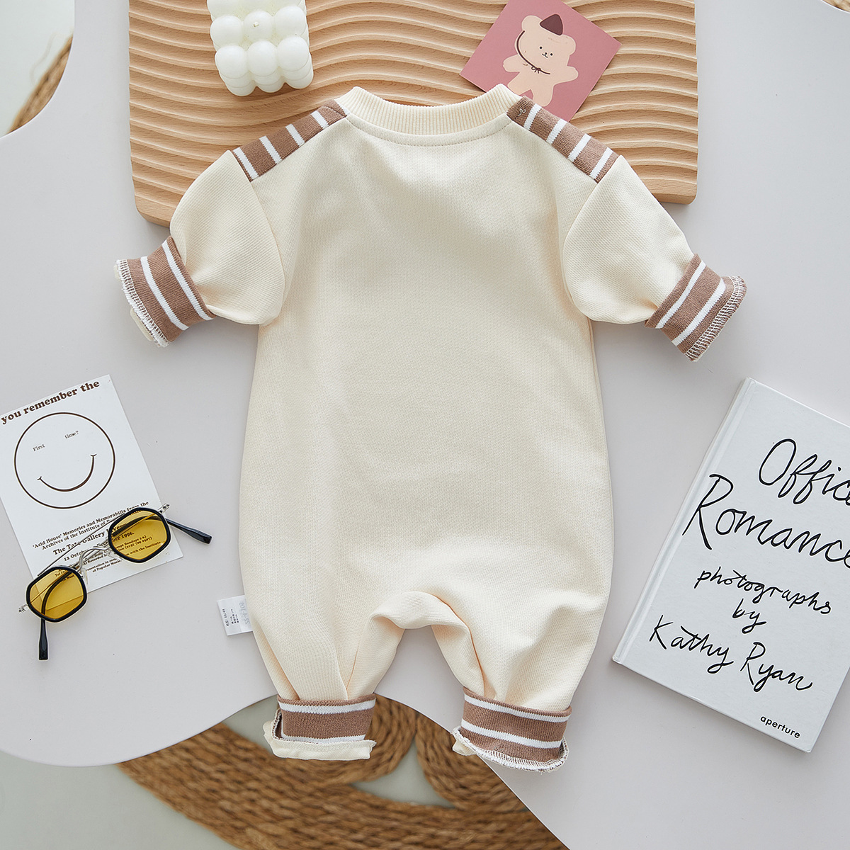 Baby Boy/Girl Stripe Cuff Bear & Letter Print Long Sleeve Romper