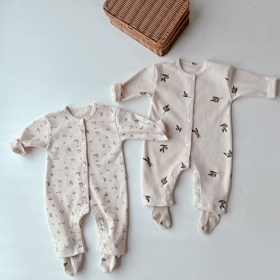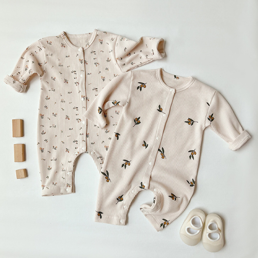Baby Boy/Girl Floral & Lemon Print Waffle Long Sleeve Romper