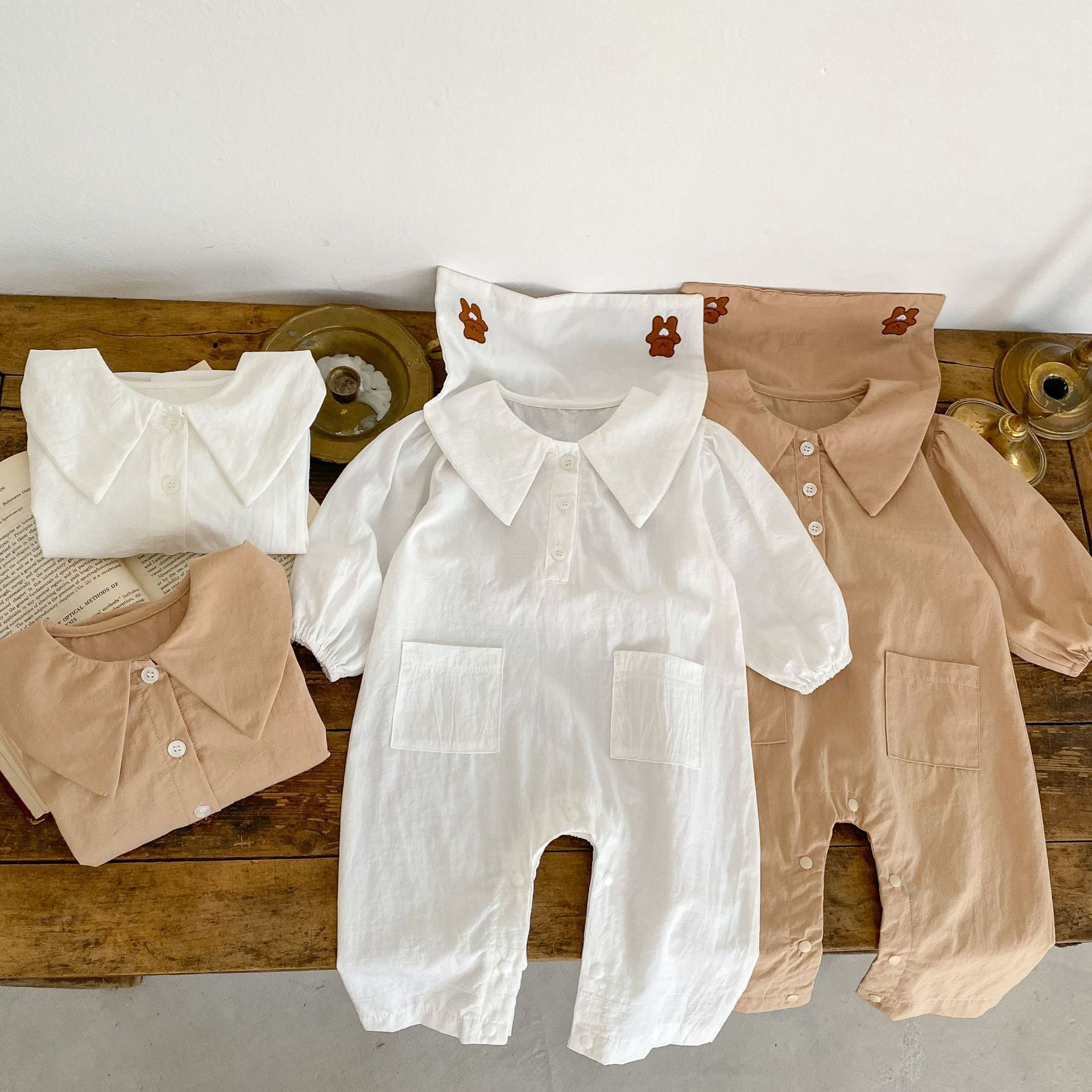 Baby Boy/Girl Solid Color Lapel Collar Long Sleeve Romper