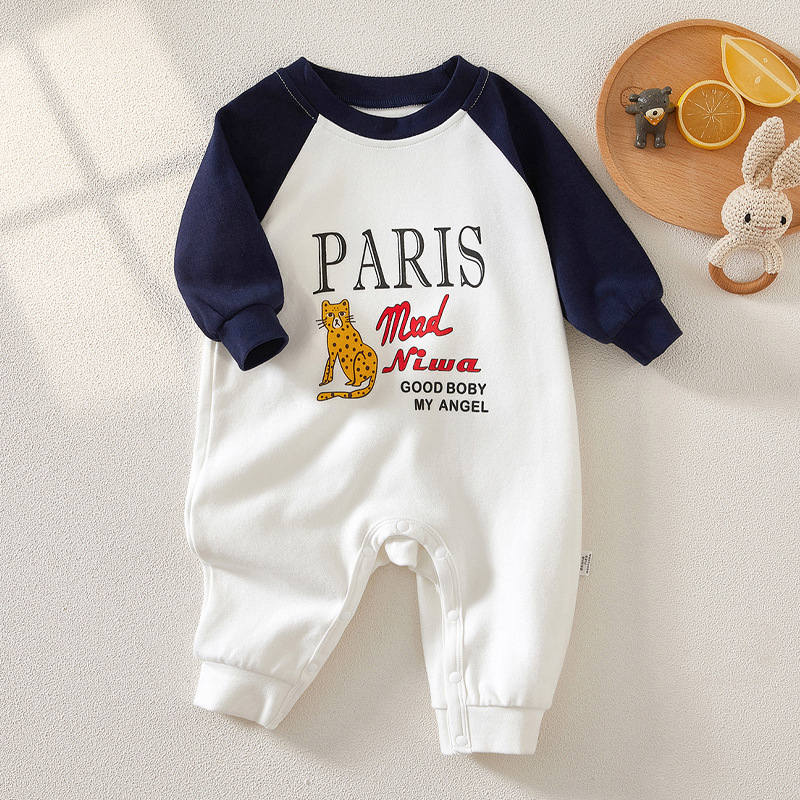 Baby Boy/Girl 100% Cotton Block Color Tiger Letter Print Long Sleeve Romper