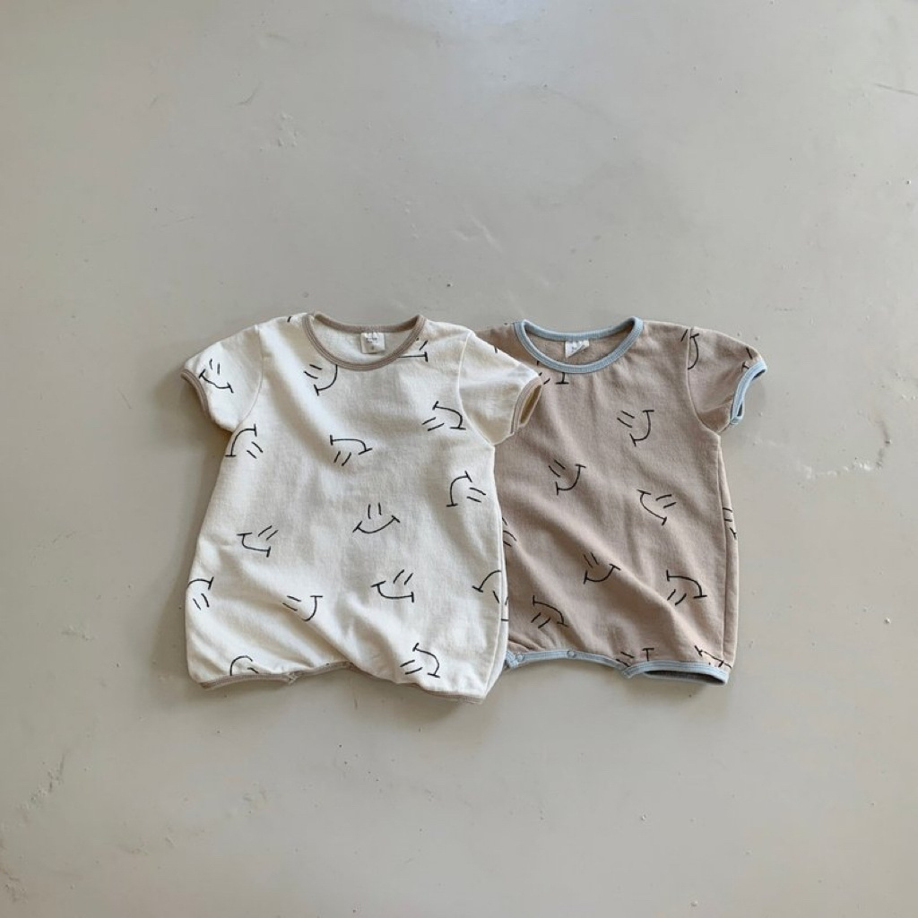 Baby Boy/Girl Allover Smiling Face Print Crewneck Short Sleeve Romper