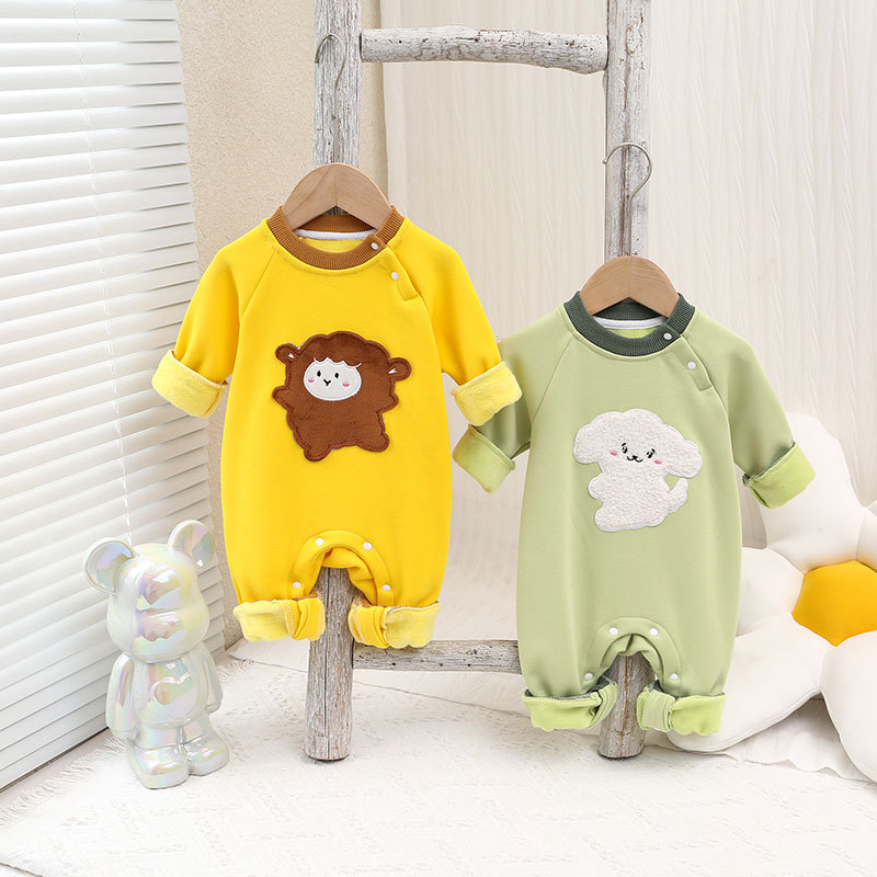 Baby Boy/Girl Fluff Embroidered Animals Long Sleeve Romper