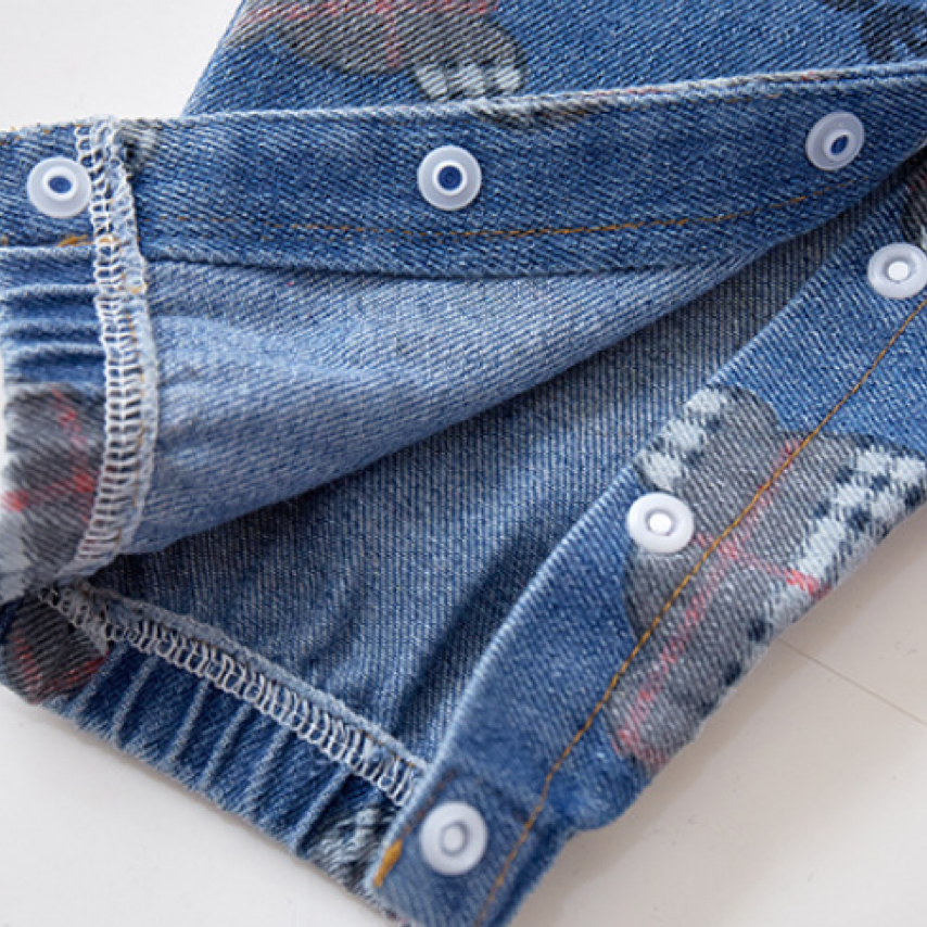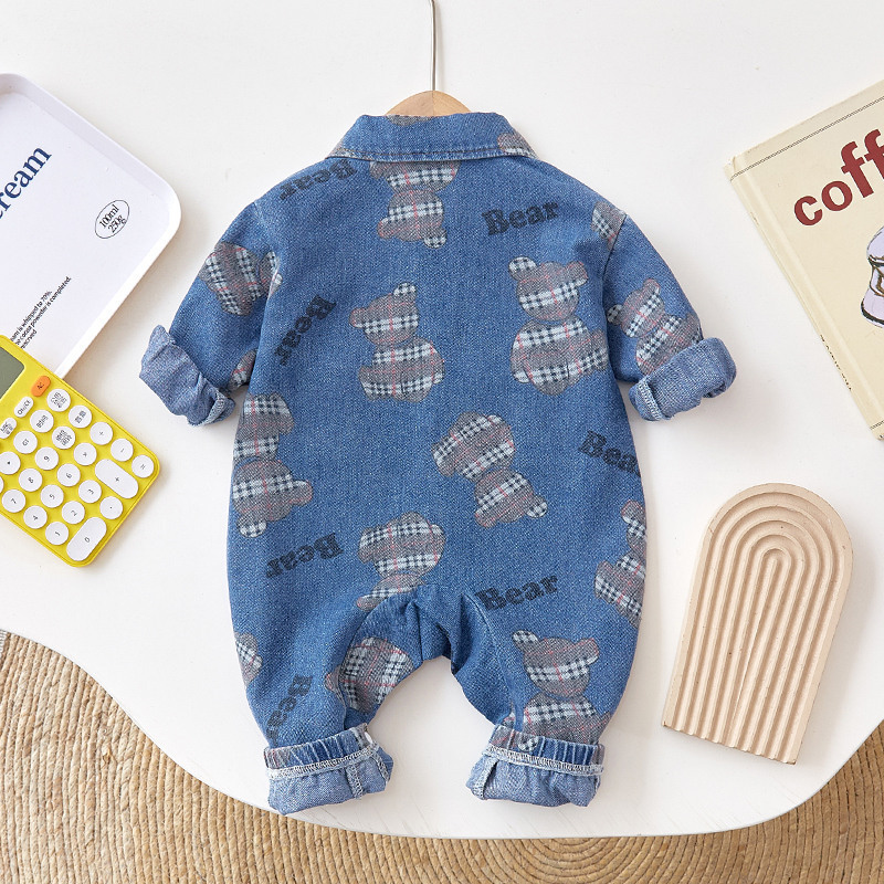 Baby Boy/Girl Allover Bear Letter Print Botton Up Casual Denim Romper
