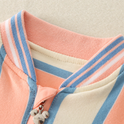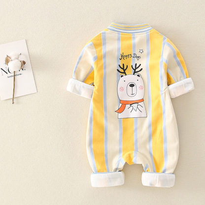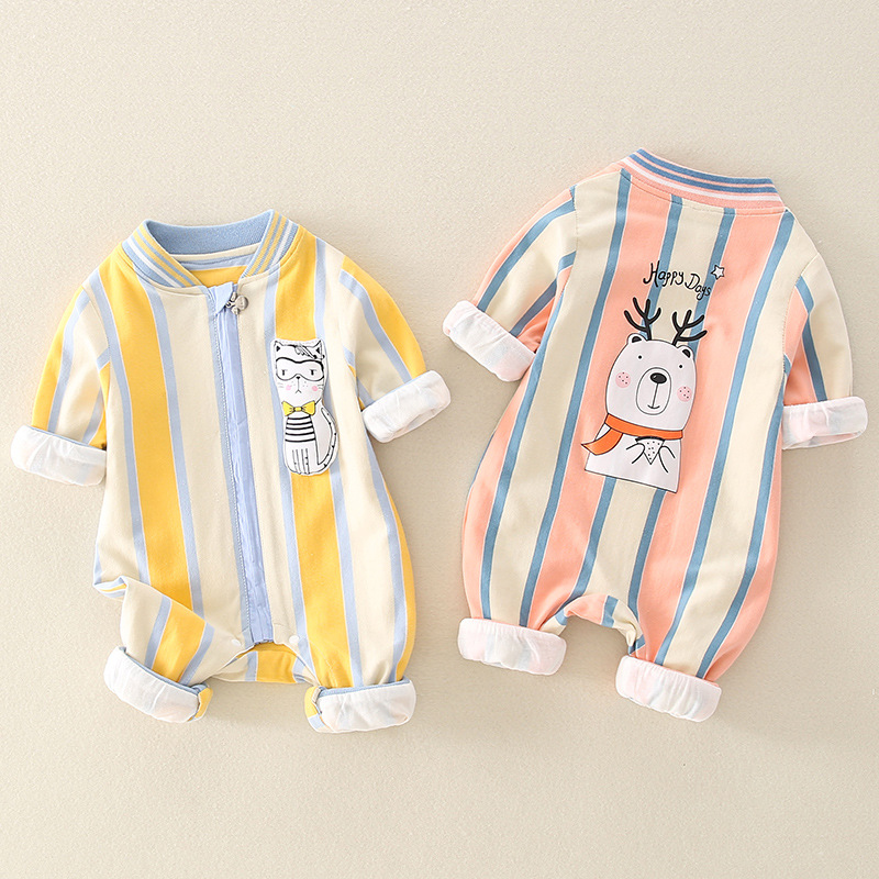 Baby Boy/Girl Colorful Stripe Cat and Bear Print Graphics Zipped Romper