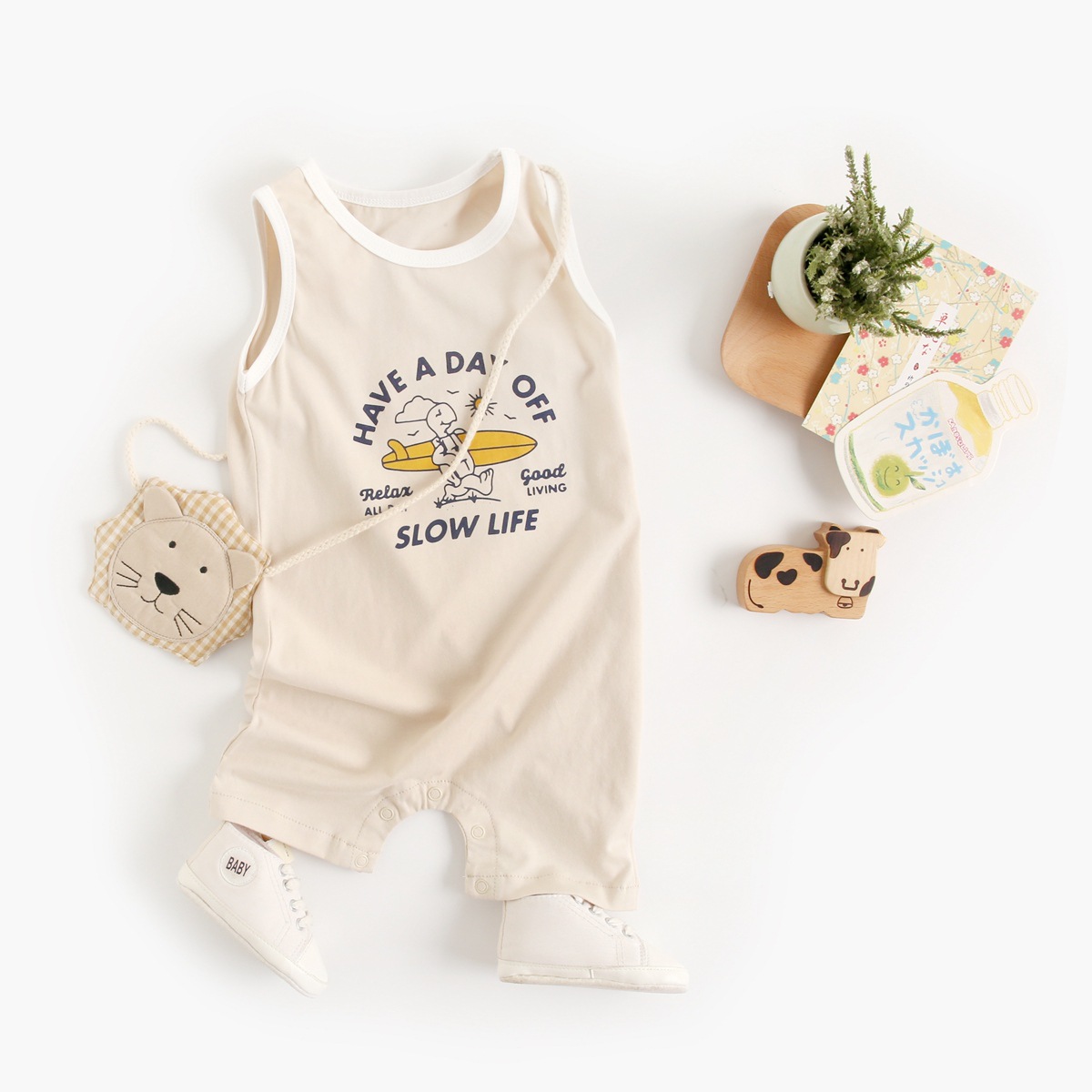 Baby Boy Summer Fashion Contrast Collar Wacky Print Pattern Sleeveless Tank Top Romper
