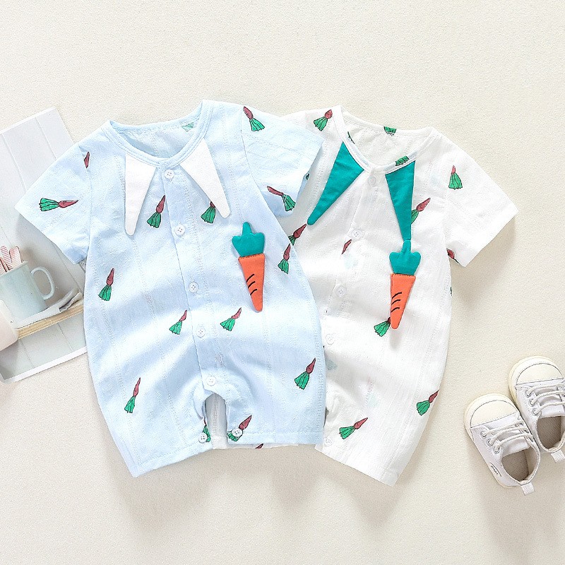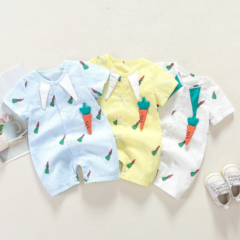 Baby Toddler Boy/Girl 95% Cotton Lapel Collar Overall Lovely Carrot Wacky Comfortable and Breathable Thin Short Sleeve Front Romper