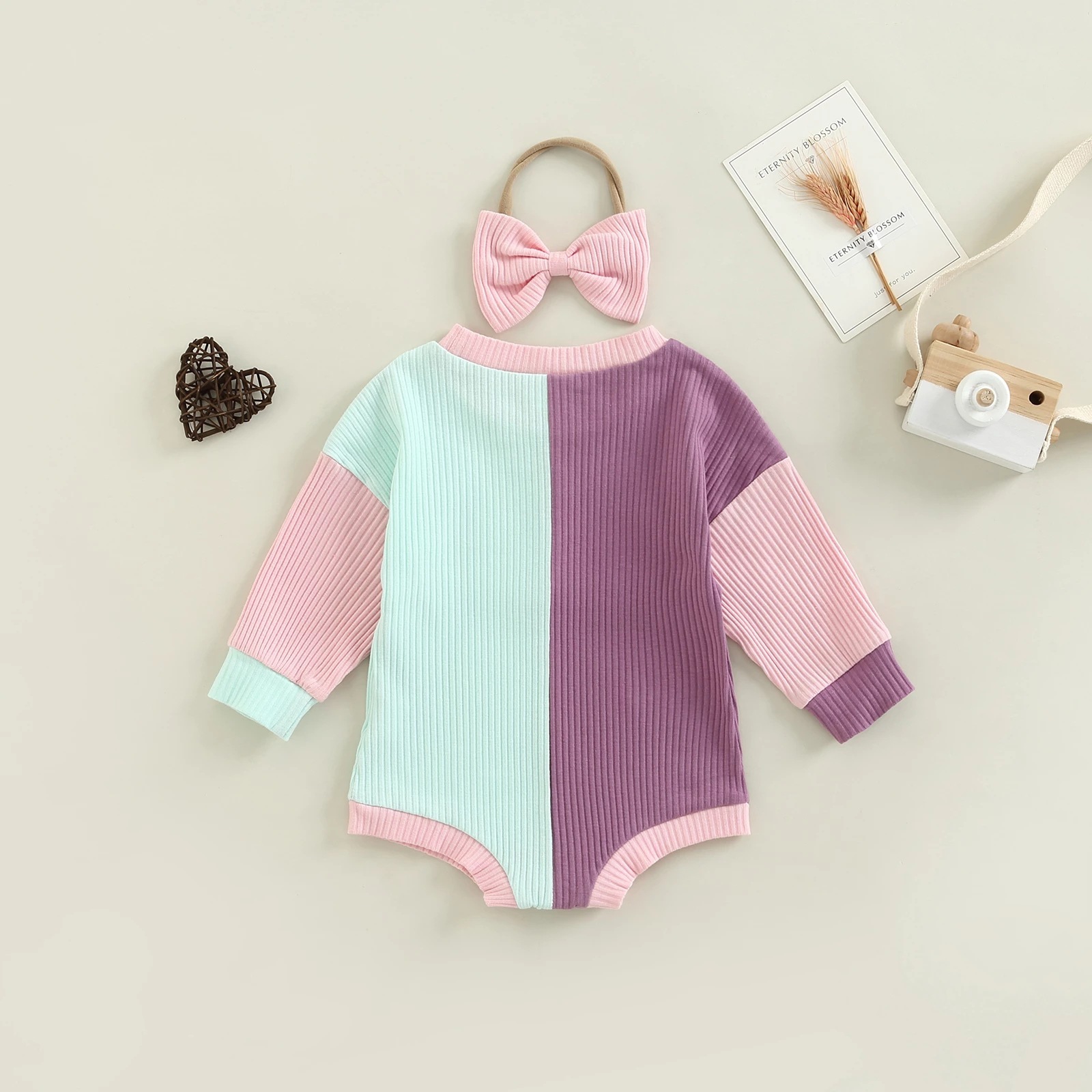 Baby Girl Block Color Knit Long Sleeve Bodysuit