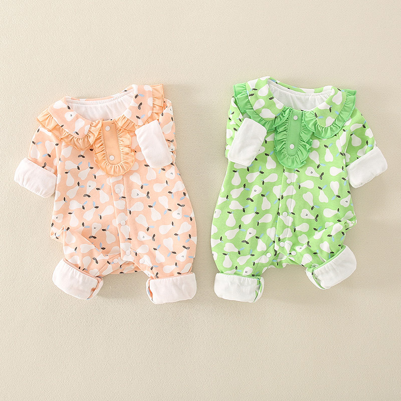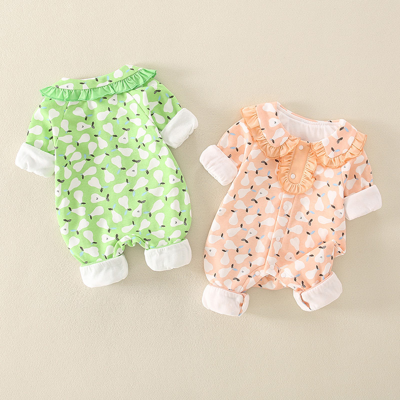 Baby Boy/Girl Allover Pear Print Ruffle Flounce Long Sleeve Romper