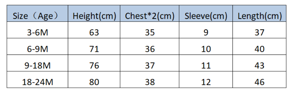 • Each size include: 1 Romper & 1 Hat