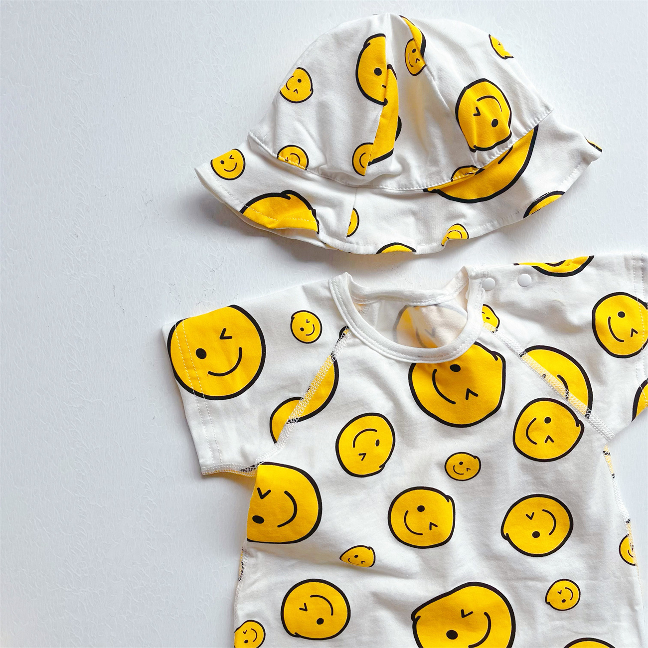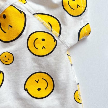 Baby Boy/Girl Allover Smiling Face Print Romper with Hat