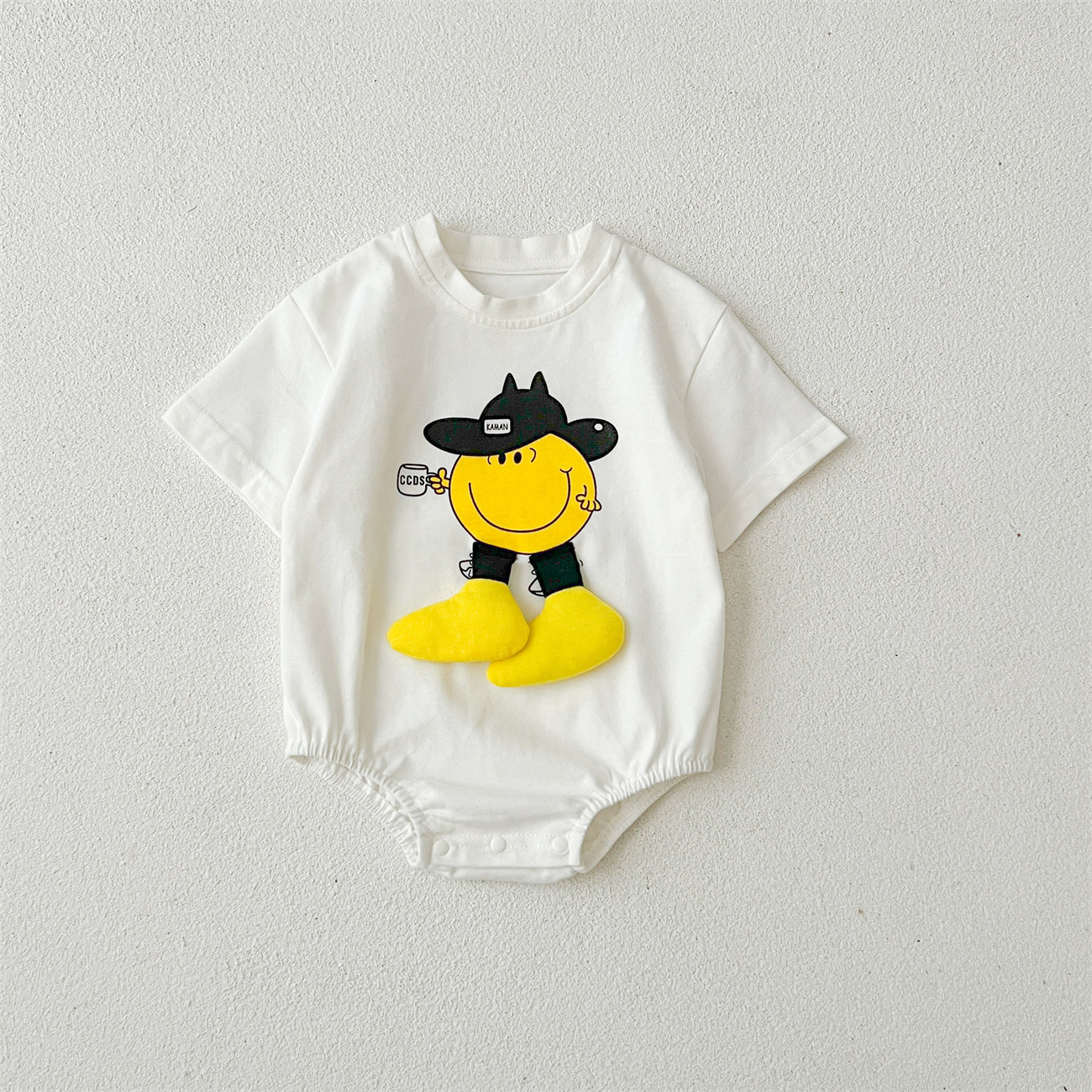 Baby Boy/Girl Smiling Face Print Graphic Short Sleeve Bodysuit