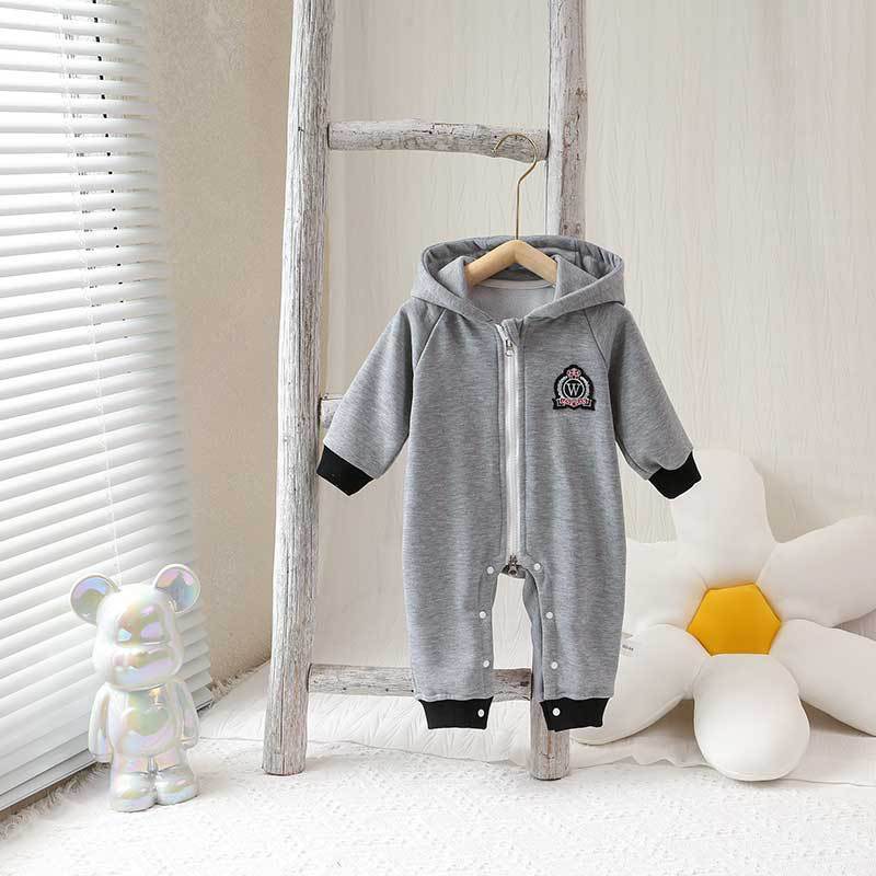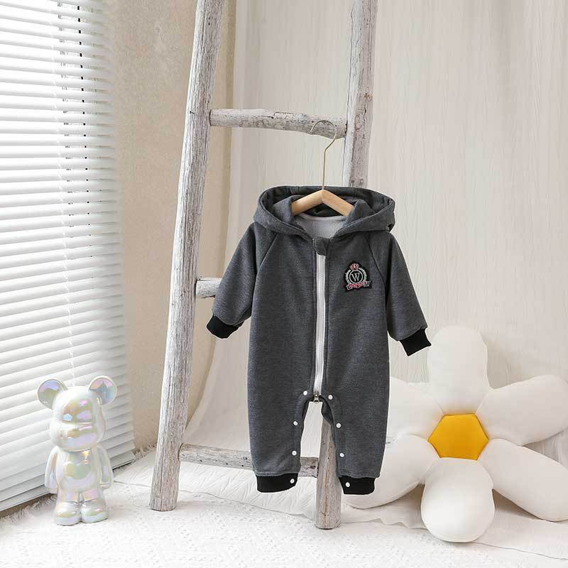Baby Boy/Girl Solid Color Emblem Graphic Docor Hooded Zipper Romper